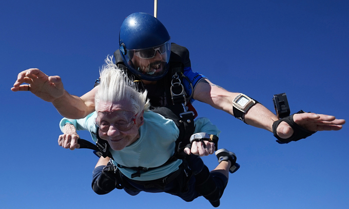 미국의 104세 여성이 세계 최고령 스카이다이빙 기네스 기록에 도전했다고 AP통신이 2일(현지시간) 보도했다.