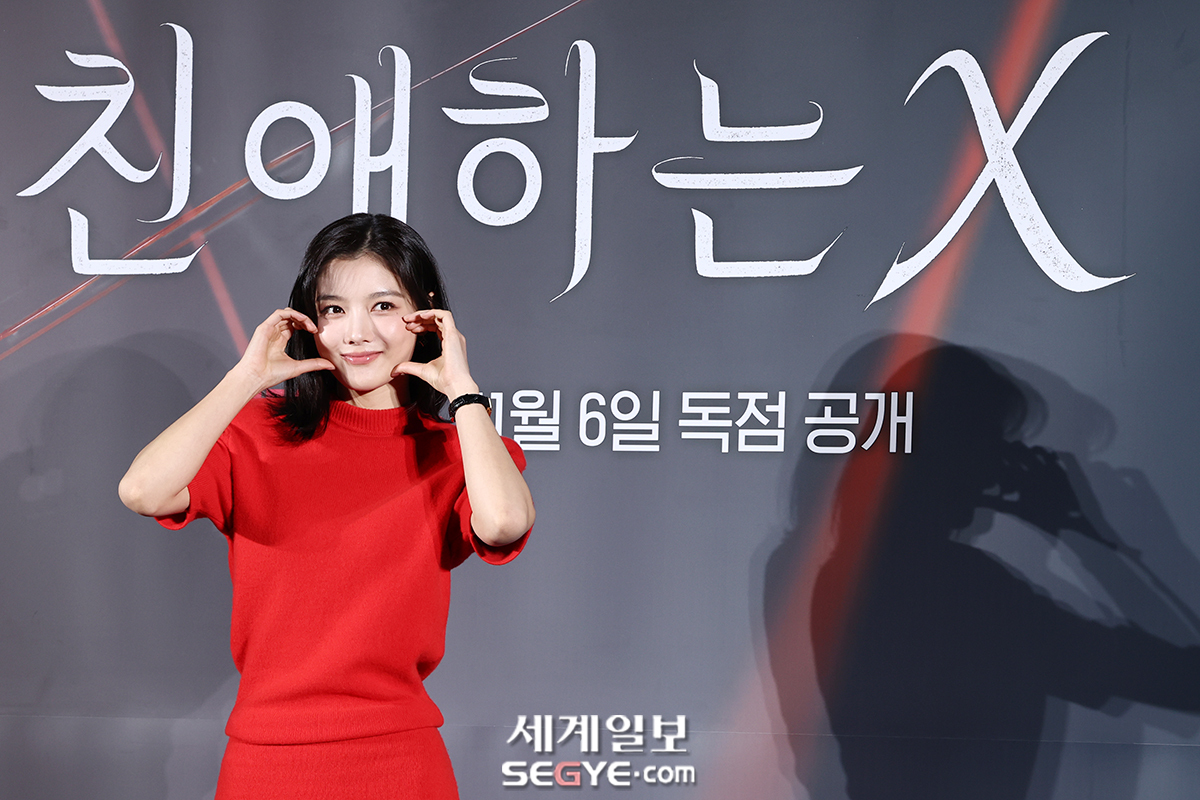 배우 김유정이 30일 CGV 용산에서 열린 티빙 오리지널 ’친애하는 X’의 제작발표회에 참석해 포즈를 취하고 있다.