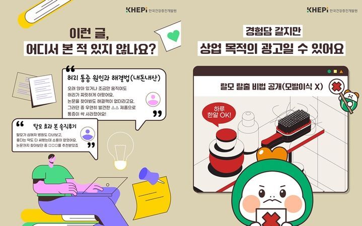 개발원은 건강정보를 가장한 허위 광고성 게시물이 국민 건강에 위해를 줄 우려가 있다며 정보의 근거를 확인한 뒤 진위를 신중히 판단해야 한다고 강조했다.