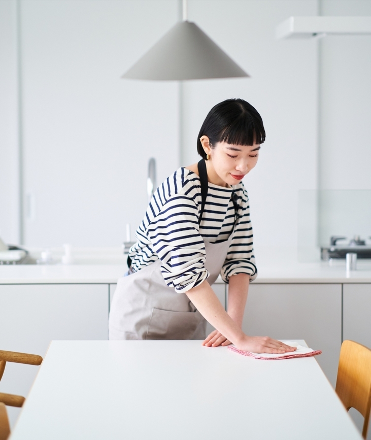 나무나 원목 식탁 역시 마감 코팅층이 벗겨지면 오염물 흡착이 쉬워지고, 얼룩이나 변색이 더 쉽게 발생할 수 있다. 전문가들은 식탁을 청소할 때 미온수에 적신 행주나 물에 살짝 적신 키친타월을 이용해 닦은 뒤, 즉시 마른 천으로 물기를 제거해 완전히 건조시키는 과정이 중요하다고 조언한다. 세정보다는 헹굼의 개념으로 관리하는 것이 좋으며, 사용한 행주는 반드시 삶거나 햇볕에 말려 세균 번식을 막는 것이 안전하다.