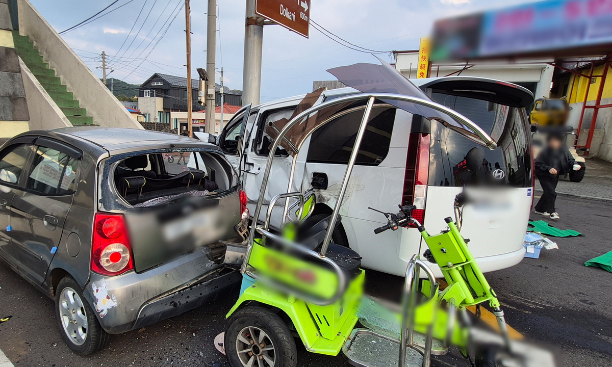 이 사고로 승합차에 타고 있던 60대 여성 1명과 길을 걷던 70대 남성 1명, 60대 남성 1명 등 3명이 크게 다쳐 심정지 상태로 소방헬기와 닥터헬기에 실려 병원으로 옮겨졌지만 결국 숨졌다.