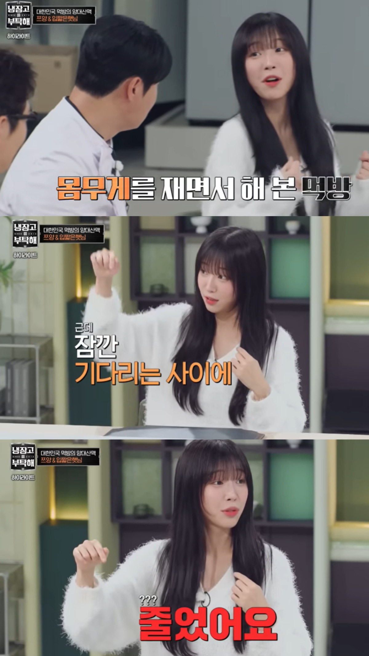 이어 김성주MC는 “실례가 안된다면 몸무게가 몇이냐”고 물었다. 쯔양은 “지금은 좀 많이 빠져서 44~45kg이다”고 말했다.