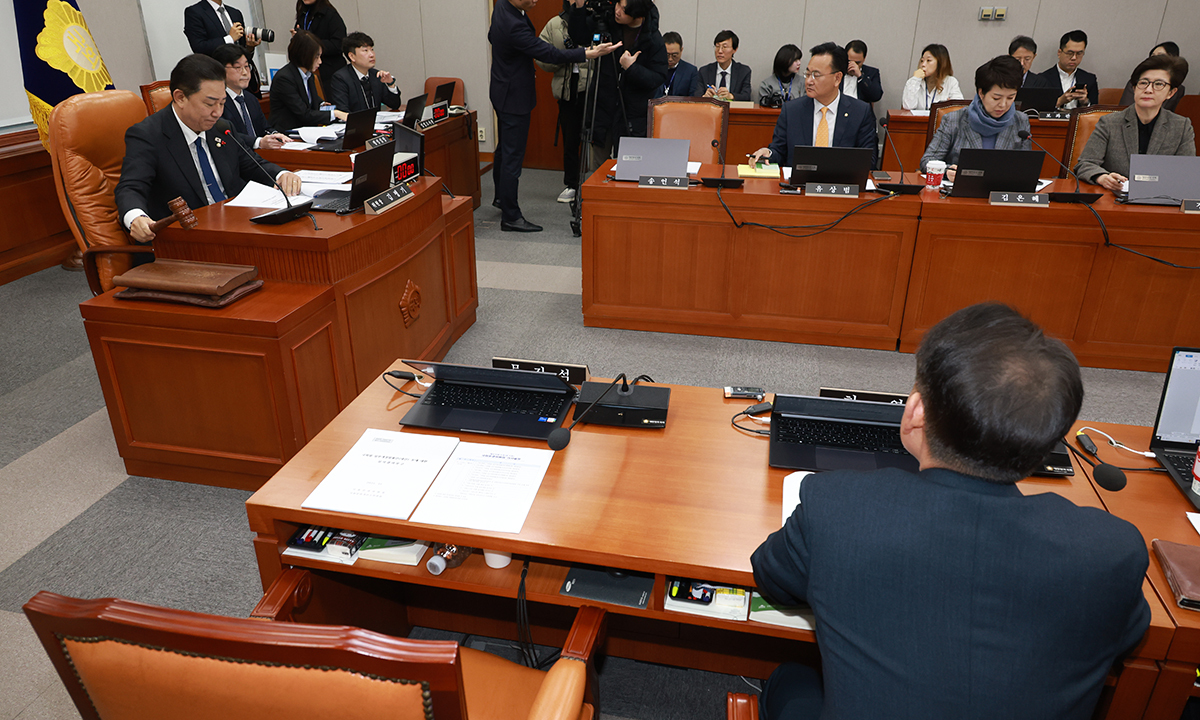 김병기 국회 운영위원장이 지난 3일 서울 여의도 국회에서 운영위원회 전체회의를 개의하고 있다. 뉴시스