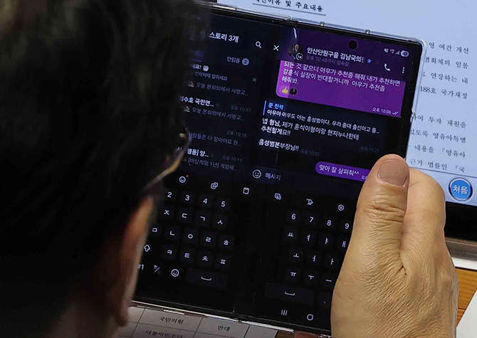 앞서 문 수석이 지난 2일 국회 본회의 도중 김남국 대통령실 디지털소통비서관에게 휴대전화 문자메시지로 같은 대학 출신의 특정 인사를 한국자동차산업협회장에 추천해달라고 부탁하는 장면이 언론에 포착됐다.