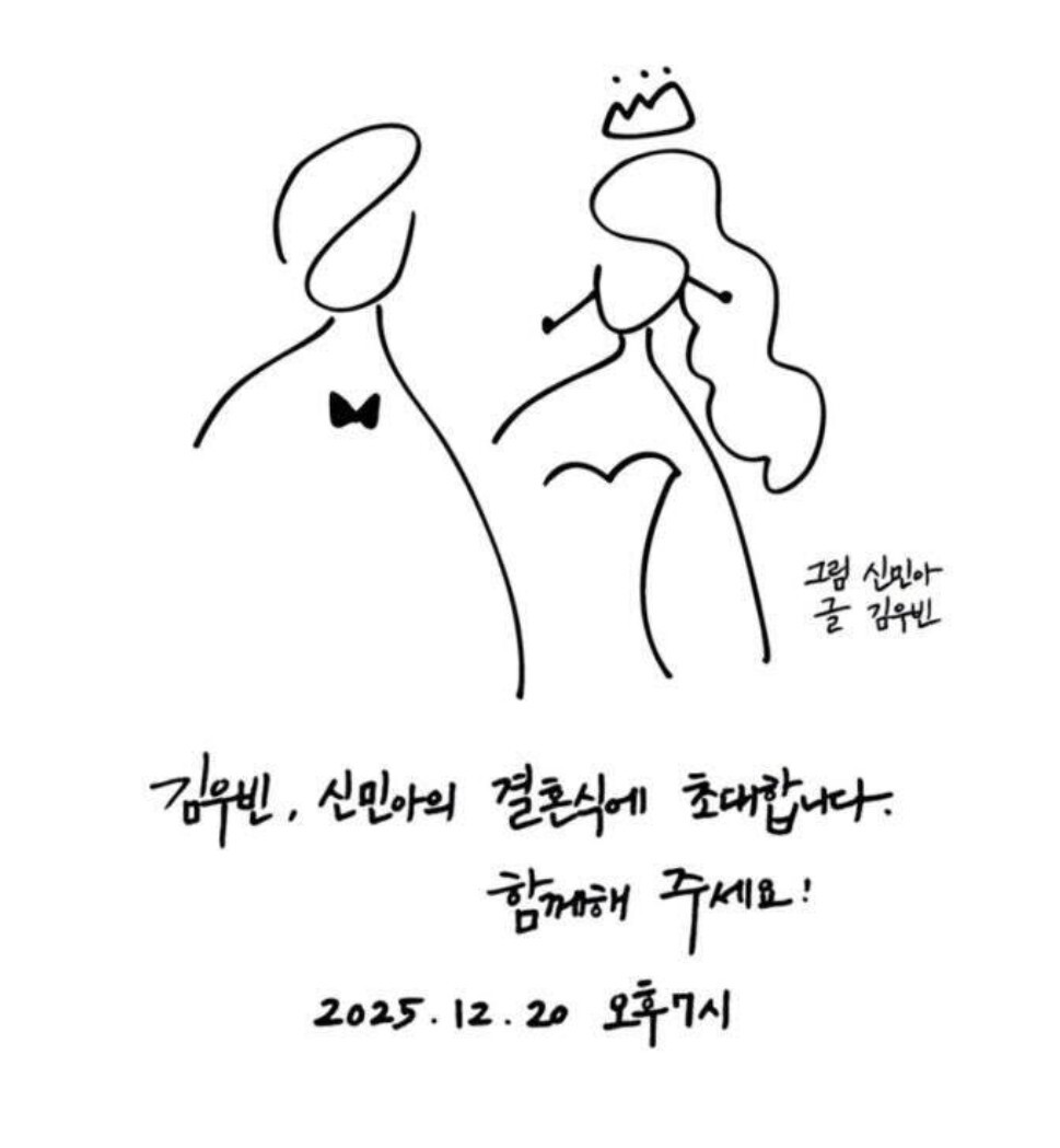 또 결혼 발표 후 신민아의 스타일리스트 A 씨가 자신의 사회관계망서비스(SNS)에 게재한 두 사람의 청첩장 사진이 화제가 되기도 했다. 신민아가 그림을 그리고 김우빈이 그림을 그린 청첩장은 심플하지만 인상적인 디자인으로 네티즌들 사이에서 큰 호응을 불러일으켰다.