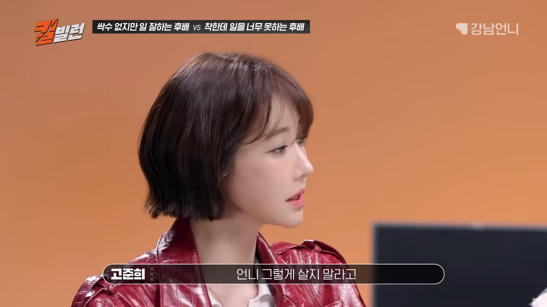 고준희는 23일 유튜브 채널 ‘강남언니’에 공개된 ‘같이 일하기 힘든 유형’이라는 제목의 영상에 코미디언 김원훈, 방송인 풍자, 인플루언서 안지민이 출연해 ‘최악의 직장 빌런’을 주제로 대화를 나눴다.