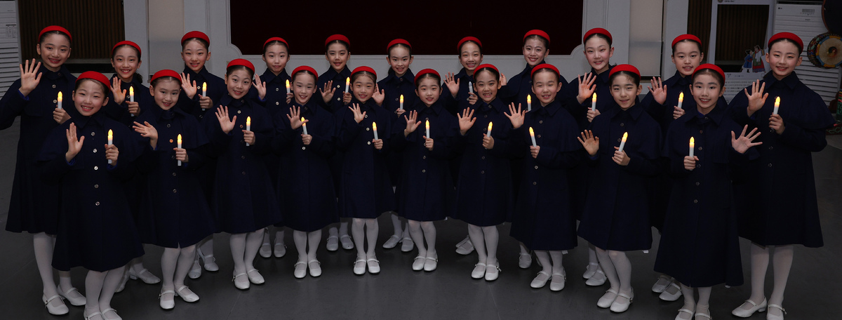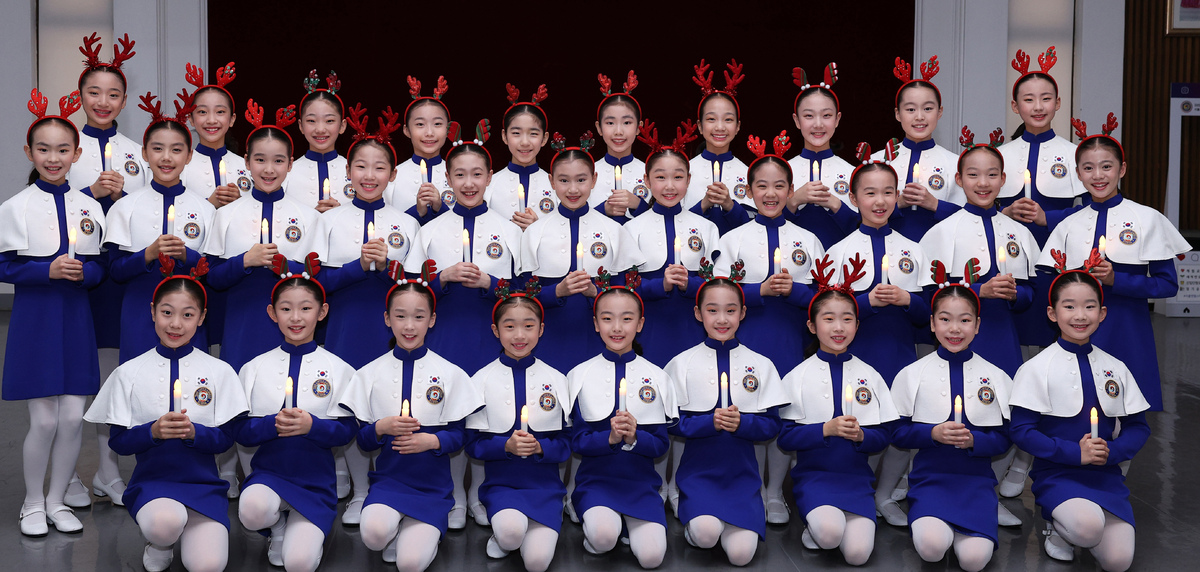 성탄절을 하루 앞둔 24일 서울 광진구 리틀엔젤스 연습실에서 루돌프 머리띠를 한 리틀엔젤스 단원들이 촛불 모양의 전구를 켜 든 채 이웃사랑의 온정이 담긴 희망의 메시지가 온 세상에 가득 퍼지길 기원하고 있다.
