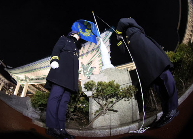 이날 오전 0시에는 청와대에 한국 국가수반을 상징하는 봉황기가 게양됐다. 대통령실의 공식 명칭도 '청와대'로 환원되며 업무표장(로고)도 변경된다.