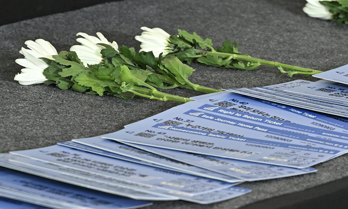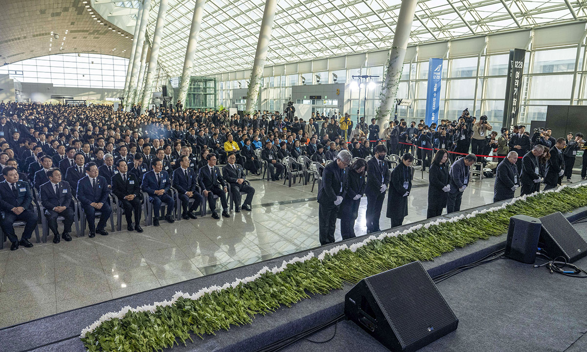 12·29 제주항공 여객기 참사 유가족들이 29일 전남 무안국제공항에서 추모식을 열고 희생자들을 기렸다. 유가족들은 사고를 기억하는 사회적 노력이 계속돼야 한다며 진상 규명과 재발 방지 대책 마련을 거듭 촉구했다.