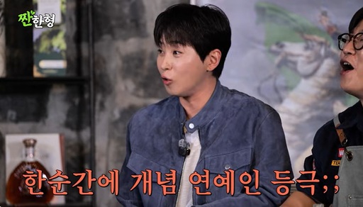 이날 신동엽은 딘딘에게 "개념 연예인께 인사해야 하겠다"고 장난치며 "너 요즘 힘들겠던데"라고 물었다.
