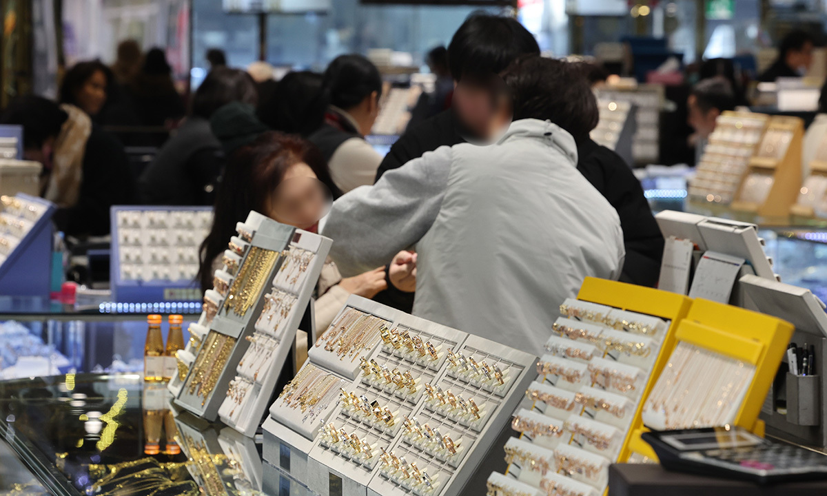 국제 금값이 사상 처음 온스당 5500달러를 넘어선 29일 서울 종로구한 귀금속 매장이 손님으로 붐비고 있다. 사진은 기사 내용과 직접적 관련 없음. 연합뉴스