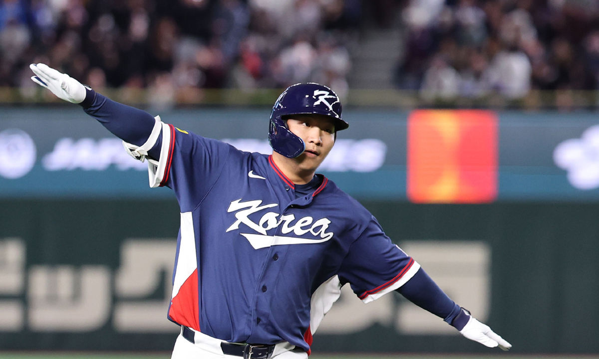 9일 일본 도쿄돔에서 열린 2026 WBC 조별리그 C조 4차전 한국과 호주의 경기, 2회초 무사 주자 1루 한국 문보경이 2점 홈런을 친 뒤 그라운드를 돌고 있다. 뉴시스