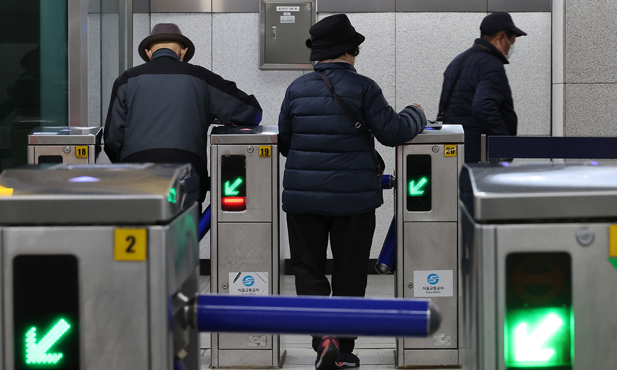 출퇴근 시간대 서울 지하철 이용객 100명 가운데 8명은 무임승차 혜택을 받는 65세 이상인 것으로 확인됐다.