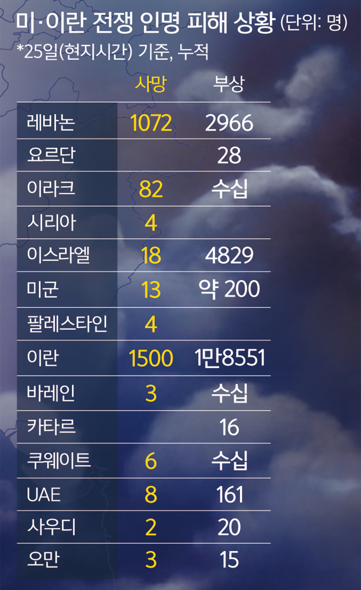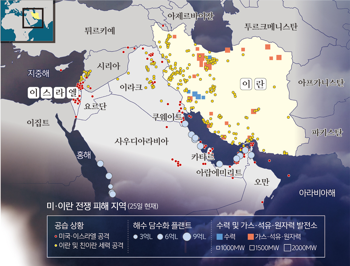 그동안 이란과 대리세력의 공격을 받아온 중동 국가들의 반발도 시작됐다. 25일 사우디아라비아 국영 SPA 통신 등에 따르면 사우디, 아랍에미리트, 쿠웨이트, 카타르, 바레인, 요르단은 성명에서 “우리는 우리의 주권, 안보, 안정을 수호하기 위해 필요한 모든 대책을 실행할 권리가 있다”고 강조했다.