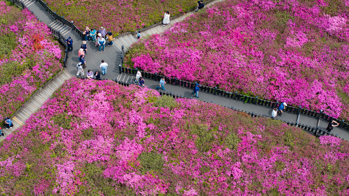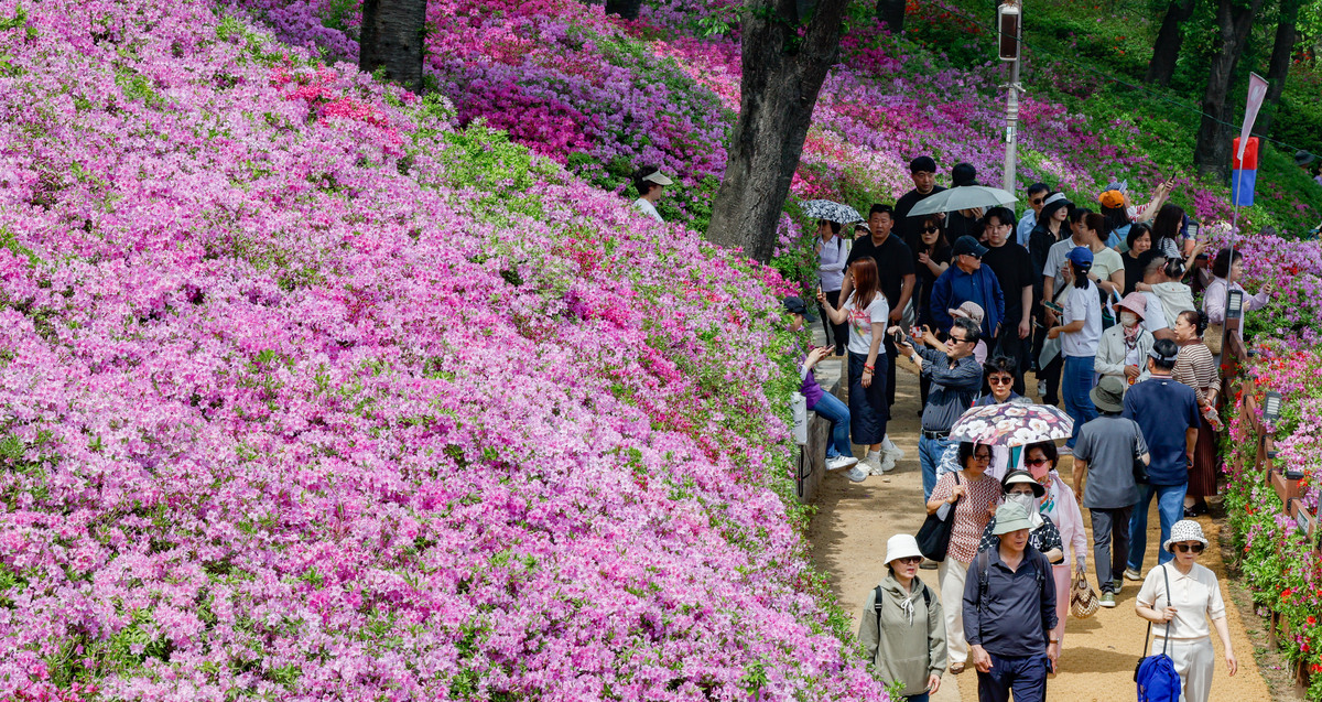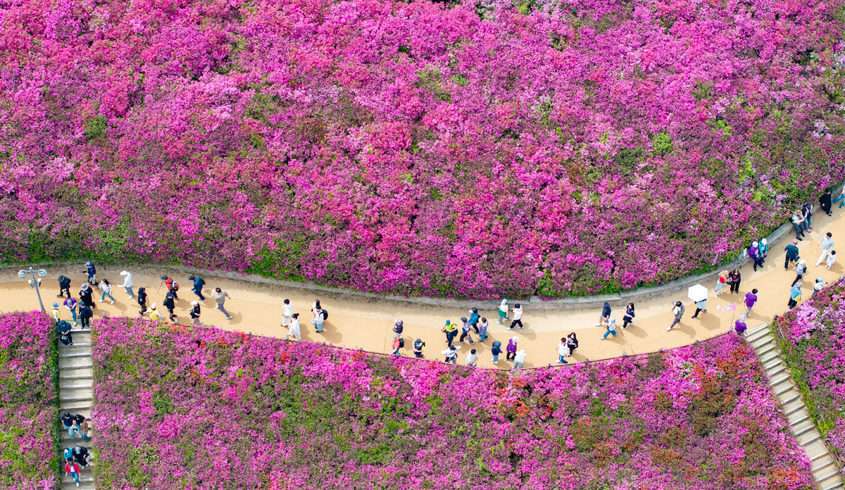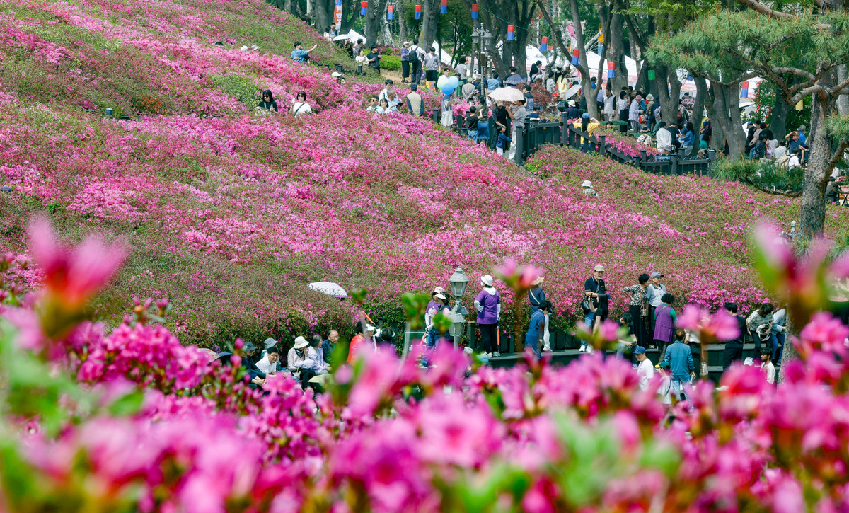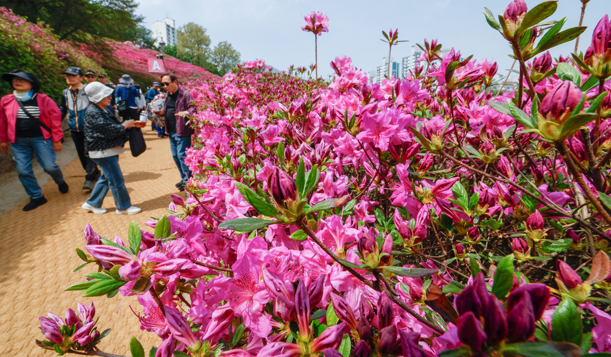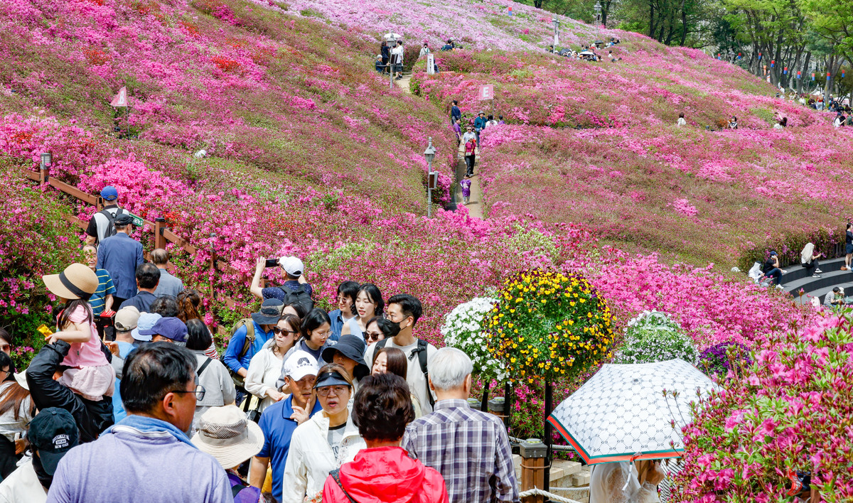 19일 경기 군포시 철쭉동산에서 2026 군포철쭉축제가 열린 가운데 시민과 관광객들이 봄꽃 구경에 나서고 있다. 경기 군포시는 ‘2026 군포철쭉축제’를 4월 18일부터 26일까지 9일간 개최한다고 밝혔다.