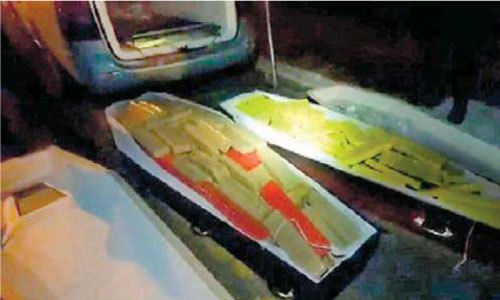 경찰은 운전사가 코로나19 사망자 시신 2구를 싣고 있다고 말했으나 서류를 제시하지 못하는 것을 보고 수상하게 여겨 관 뚜껑을 열어보니 마리화나가 가득 차 있었다고 말했다.