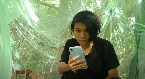 베베오니는 지난 9일 랑삿(열대과일) 나무 위에 나무판자를 놓고, 스마트폰, 보조배터리, 생수, 간식을 가지고 올라가 모기장을 친 뒤 그 안에서 시험을 보며 하루를 보냈다.