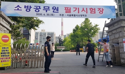 소방청은 시험 종료 후에도 시험실별로 순차적으로 퇴실하도록 해 한꺼번에 응시생들이 몰려나가는 감염위험 상황을 방지하도록 했다고 전했다.