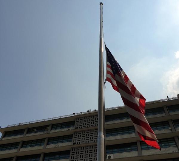 로버트 랩슨 주한 미국 대사대리는 19일 본인 및 대사관의 공식 사회관계망서비스(SNS) 계정을 통해 미 대사관에 성조기가 조기로 게양된 사진을 공개했다. 랩슨 대사대리는 “애틀란타에서 일어난 무분별한 총격 사건 희생자 추모를 위해 미국 대사관에 조기를 게양했다”고 소개했다. 이어 “이 사건으로 사랑하는 이들을 잃은 분들께 깊은 애도를 표하고 우리도 함께 슬퍼하고 있다”면서 “바이든 대통령이 분명히 밝혔듯이 우리는 아시아계 미국인 커뮤니티와 함께 하며 증오에 맞설 것”이라고 덧붙였다.