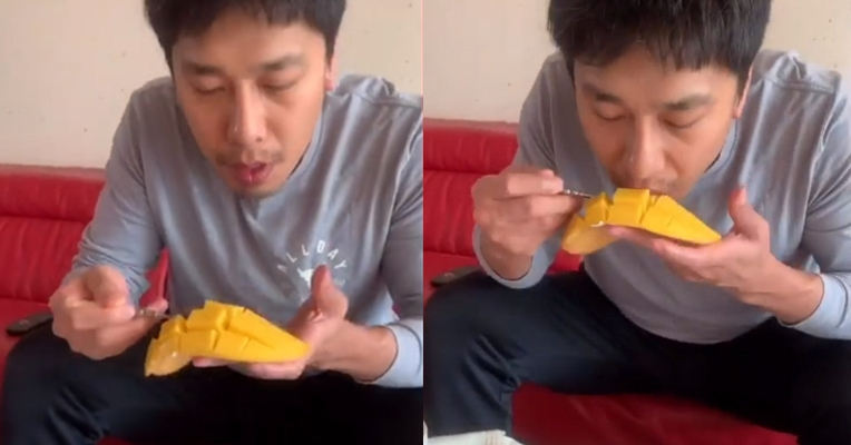 공개된 영상 속 김동성은 포크를 이용해 과일을 먹고 있다.