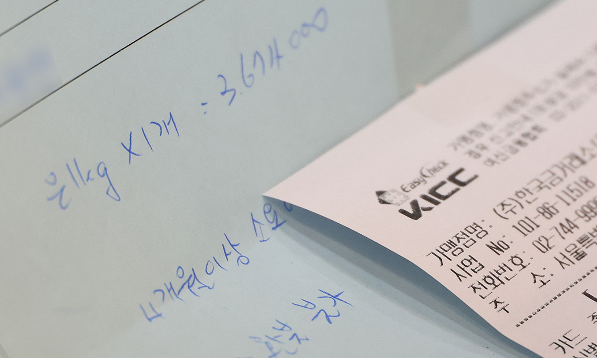 지난 17일 서울 종로구 한국금거래소 종로본점에서 실버바를 구매한 고객의 영수증에 제작 기간 4개월 이상 소요 내용이 적힌 모습. 연합뉴스