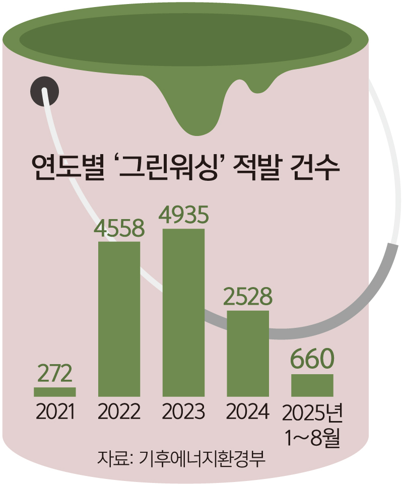 기후에너지환경부와 공정거래위원회가 최근 기업의 ‘그린워싱’(친환경 위장) 판단 기준이 되는 ‘통합 가이드라인’을 만드는 데 착수한 것으로 확인됐다. 5년간 기후부가 적발한 기업 그린워싱이 1만3000건을 육박하는 가운데 경영계가 관련 제재에 대해 ‘이중규제’라는 우려를 내놓는 데 대한 조치다. 현재 기업 그린워싱 제재는 각각 다른 법에 근거해 기후부와 공정위가 별도 판단해 진행하고 있다.