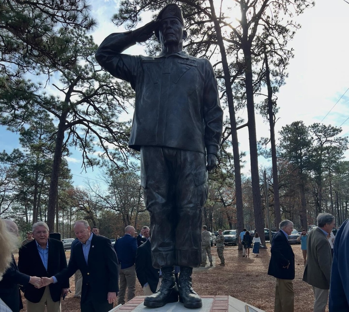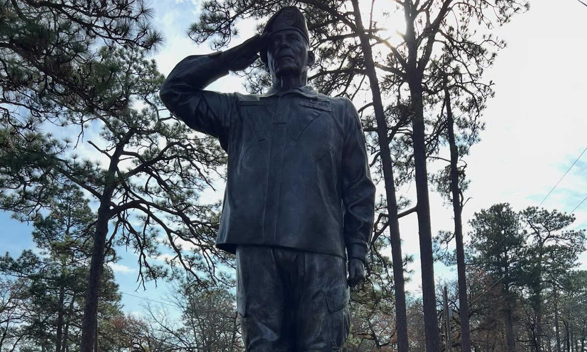 미국 조지아주에 있는 육군 기지 포트 베닝 안에 세워진 랠프 퍼켓 주니어(1926∼2024) 전 육군 대령의 동상. 실제 사람과 똑같은 크기의 동상으로, 군복 차림의 퍼켓 대령이 거수경례를 하는 모습을 형상화했다. SNS 캡처