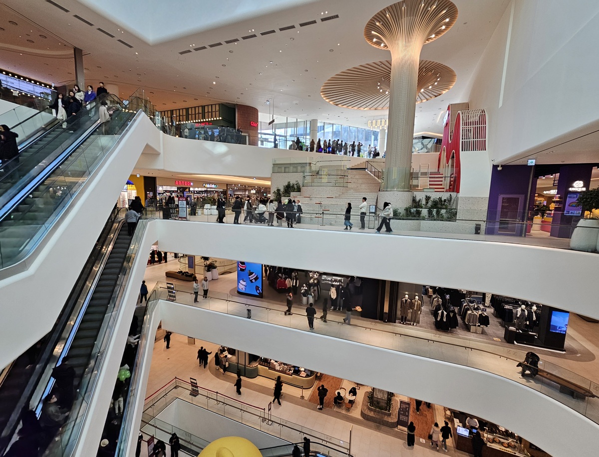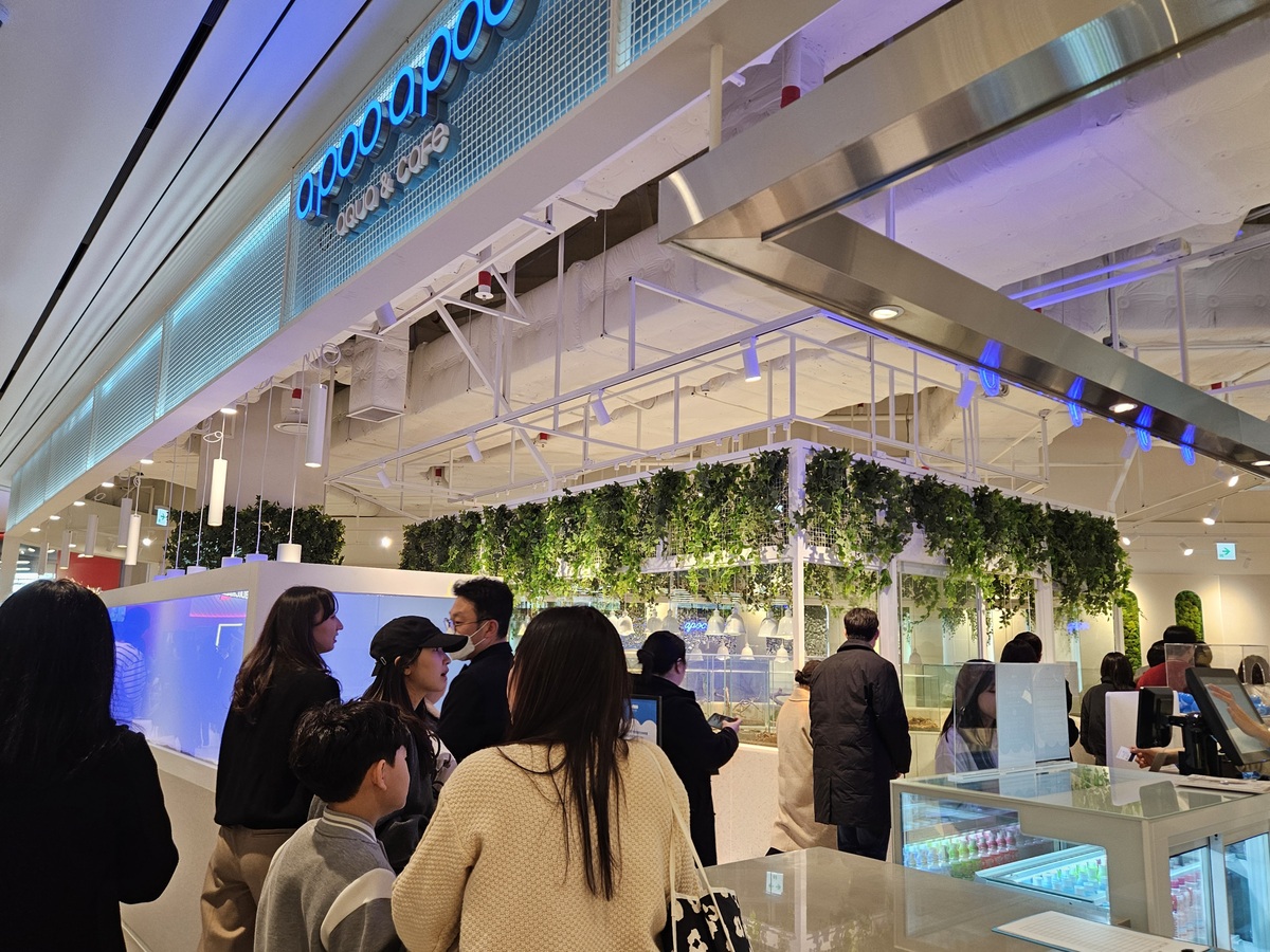 3545 육아 가정을 공략한 패밀리·키즈 특화 콘텐츠도 강점이다. 3~4층으로 가니 벽면을 따라 구성된 곡선형 플레이월 ‘업스테어’가 눈길을 끌었다. 아이들이 구조물을 따라 공간 곳곳을 탐색하며 마음껏 뛰어놀고 있었다. 오감형 놀이·키즈클래스 ‘째깍다감’과 키즈 스포츠 엔터테인먼트 시설 ‘챔피언더블랙벨트’는 다양한 키즈 체험형 프로그램을 마련해 벌써부터 인기가 상당했다. 도심 속 아쿠아리움 카페 ‘어푸어푸’에서는 다양한 해양 생물과 파충류를 관찰할 수 있는 이색 체험을 제공한다. 국내 최초로 크레욜라 본사 IP를 활용한 아트 체험형 키즈 엔터테인먼트 ‘크레욜라 익스피리언스’도 내년 초 문을 열어 아이들의 창의력을 자극할 예정이다.