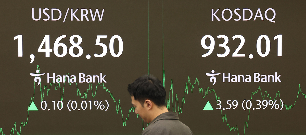 3일 서울 중구 하나은행 본점 딜링룸 현황판에 원/달러 환율, 코스닥 지수가 표시돼 있다. 연합뉴스