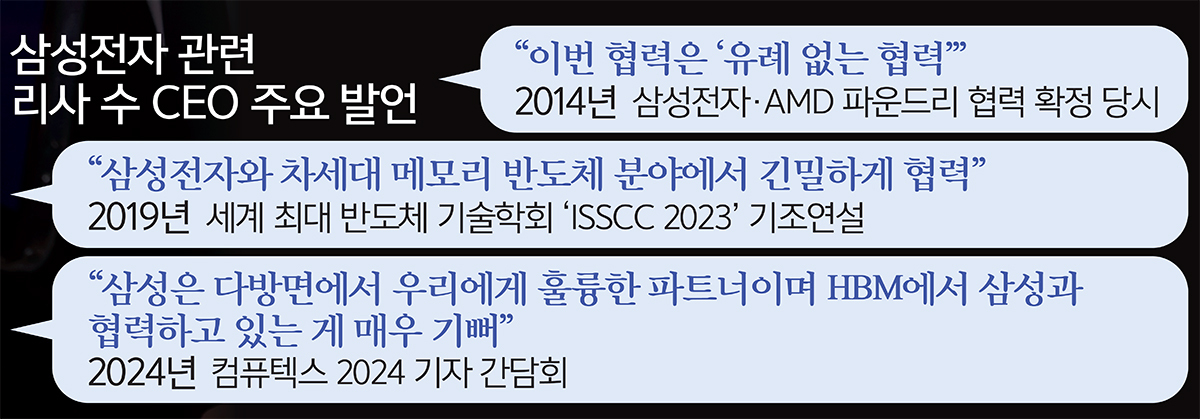 인공지능(AI)의 ‘황제’나 ‘대부’로 불리는 엔비디아의 젠슨 황 최고경영자(CEO)에 이어 ‘반도체 여왕’인 AMD의 리사 수 CEO가 삼성전자와의 긴밀한 유대를 강조했다.